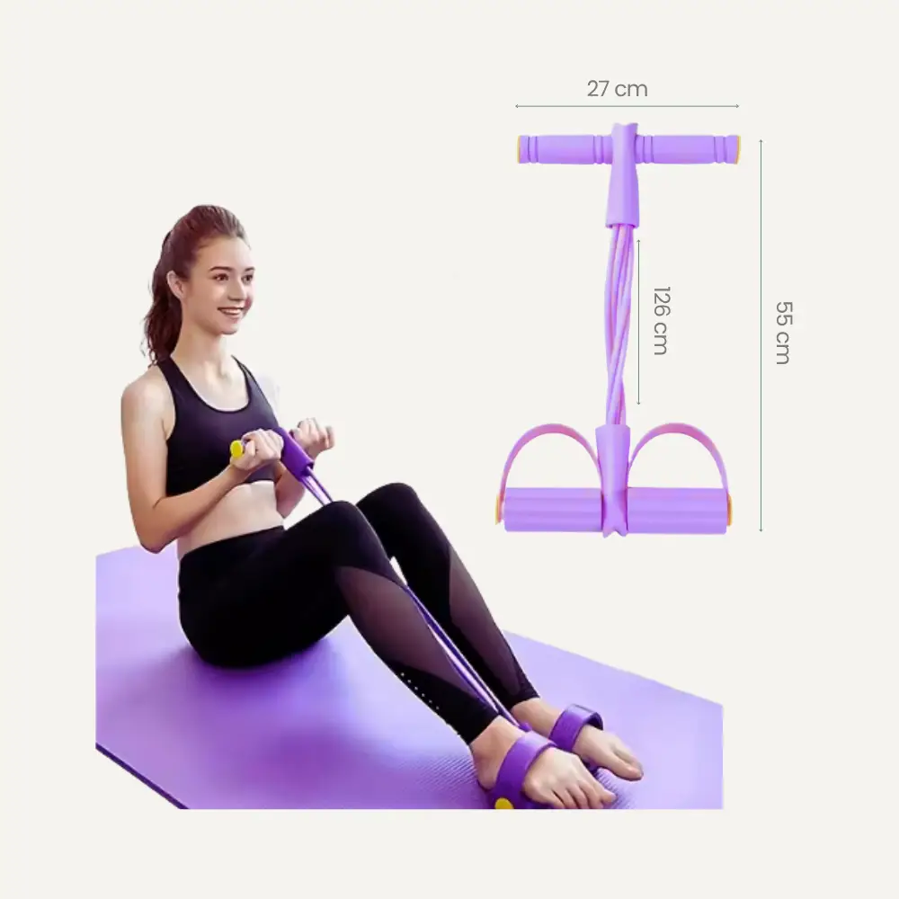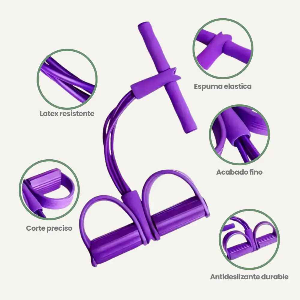 Bandas con Pedal para Entrenamiento en Casa: movimiento que sostiene tu intención. Este ejercitador con bandas y pedal está diseñado para mujeres que integran el autocuidado físico en su rutina diaria. Ideal para quienes viven en espacios reducidos, comparten con hijos o atraviesan procesos de transformación emocional, este producto permite ejercitar brazos, piernas y abdomen con suavidad y precisión.