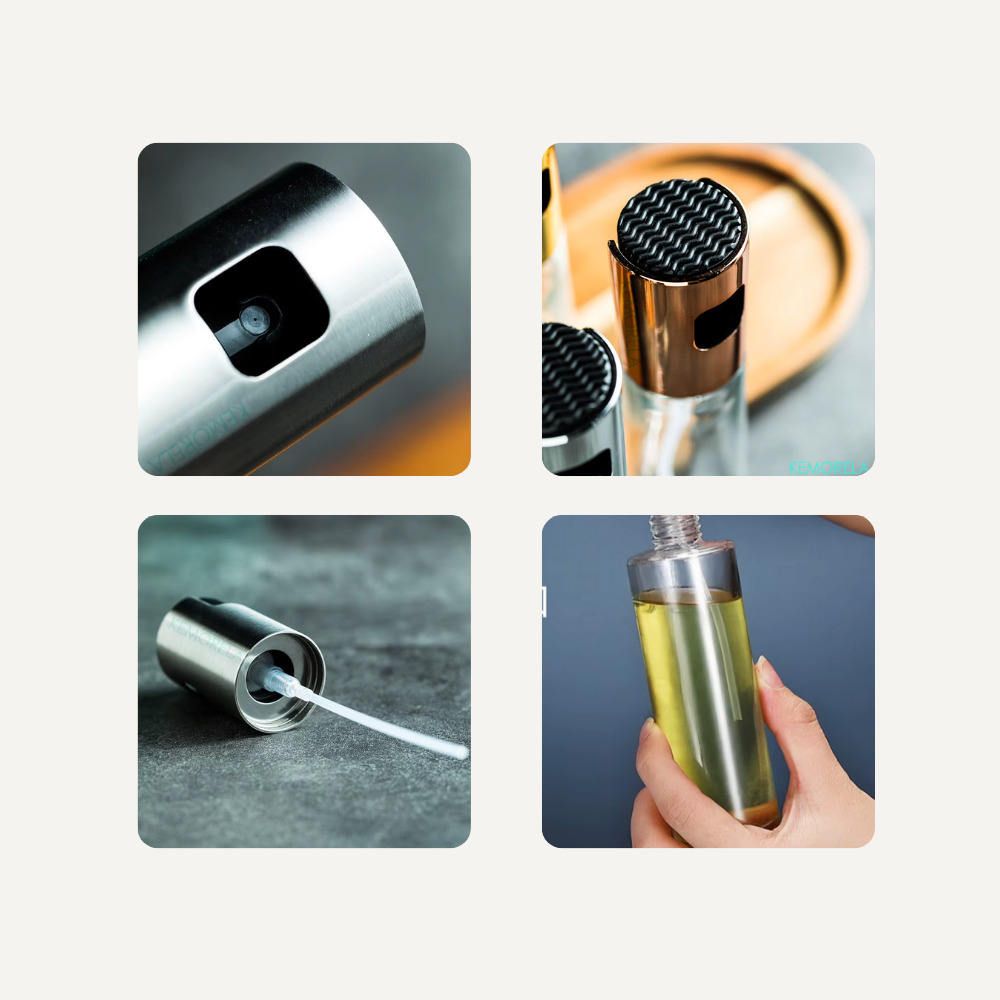 Rociador Preciso de Aceite – 100ml Vidrio: precisión y belleza en cada gota. Este dispensador compacto está diseñado para mujeres que convierten la cocina en un espacio de armonía y expresión personal. Su boquilla dosificadora permite controlar cada vertido con elegancia, evitando derrames y aportando exactitud a tus recetas.