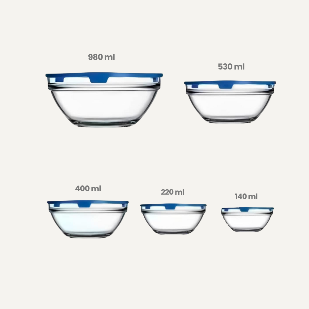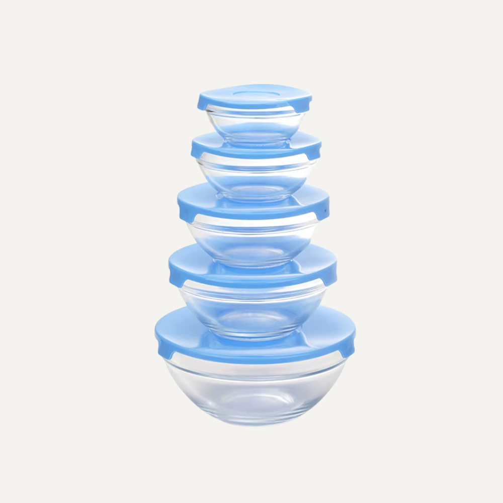 Set de 5 Taper Bowl de Vidrio: conserva con elegancia, organiza con intención. Este set de bowls de vidrio con tapa es ideal para mujeres que convierten el orden en la cocina en una expresión de bienestar. Cada recipiente permite almacenar alimentos con precisión, manteniendo su frescura y facilitando una rutina más armónica.