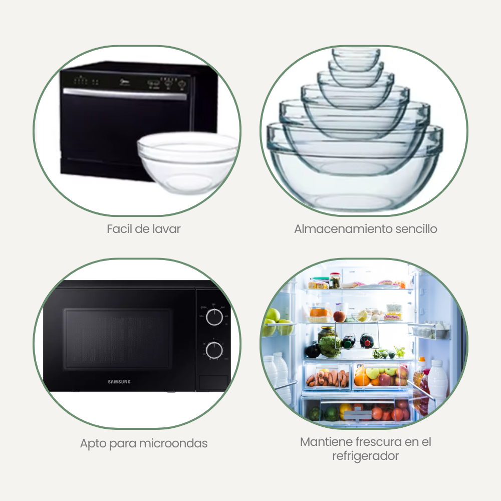 • 5 bowls de vidrio con tapa hermética